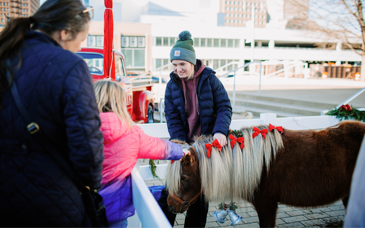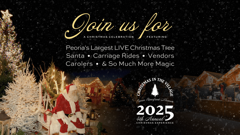 We are excited to present the fourth annual Christmas in the Village in Peoria, IL! This special event continues to grow each year, featuring an exciting line up of local food trucks & vendors, hot chocolate and holiday cocktails, horse-drawn carriage rides, Laser Holiday Magic, carolers, live animals, the Peoria Ballet Nutcracker ballerinas, holidays movies in the Giant Screen Theater, museum exhibitions, some special exciting surprises, and Peoria’s LARGEST live Christmas tree!